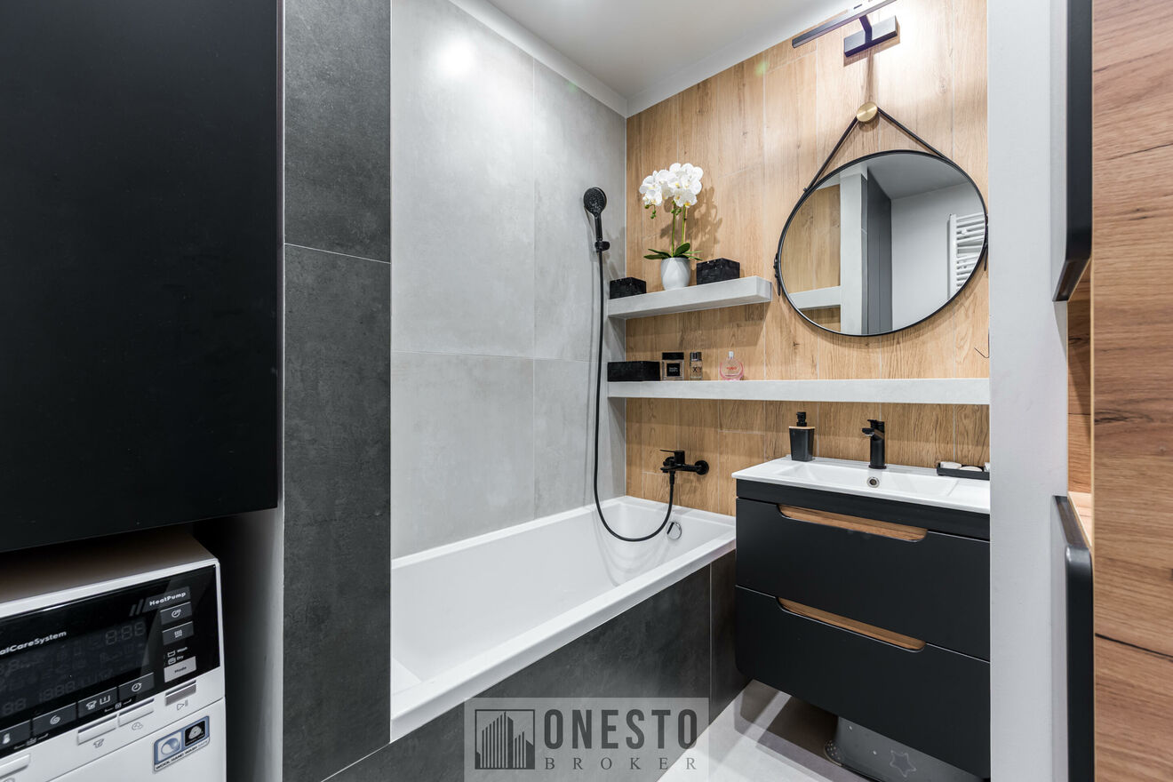 Mieszkanie w pełni wyposażone aneks kuchenny z meblami w zabudowie, łazienka z wanną oraz meblami w zabudowie, w wejściu znajdziemy dużą szafę w zabudowie. W salonie jest zamontowana klimatyzacja. W garażu podziemnym znajduje się garaż zamykany.
